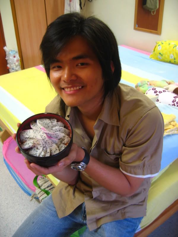 0 commentsHmmz, again, I don't look good in the photo. LOL. Ate half the cake. Here's the rough ingredients inside: Sponge cake, cooking oil, cheese, cream and dragon fruit (still got anything missing 小宝?).
